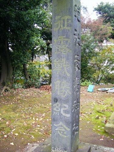 近くを散歩しているとき神社の境内にある碑をみつけました実際には征露戦勝記念と彫られていますがどういうわけか字を彫ってあるところが埋められています 裏側には明治38年10月とありますので日露戦争が終わってから1ヶ月後には立てたことになります石…