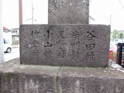 谷田にある日蓮宗のお寺、妙隆寺の入り口に石塔が立っていて講の記念に建てたと思われます年号は文政5年となっていますので調べてみると1822年になりますね下の方には当時の谷田の5つの村の名前が刻まれていました谷田村、御門村、夏梅木村、小山村、…
