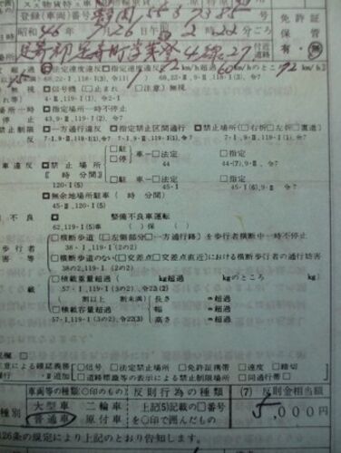 ここのところずっと交通違反は無くゴールド免許を所持していますがこの違反切符は昭和46年(1971)の7月から8月にかけて車で北海道に行った時足寄で捕まったときのもの60キロ制限のところを72キロで走ったようです前の北海道ナンバーの車と同じ…