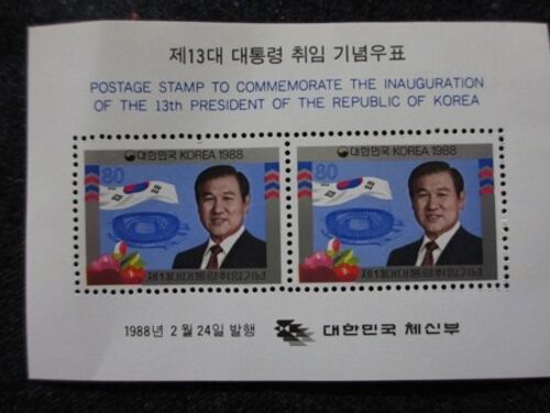 韓国の第13代大統領である蘆泰愚(ノ・テウ)氏の切手が引き出しから出てきました昔は切手を集めていたので韓国へ行ったときに明洞にある中央郵便局で買ったものです1988年の2月に発行されています図柄はその年に行われたソウルオリンピックの競技場…