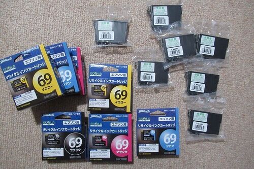 今まで使っていたプリンターのインクを使わなくなったため 取りに来てくれる方に譲ります エプソンのリサイクルインク 69 ブラック 8個 シアン 2個 イエロー 2個 マゼンタ 2個 以上合計14個で ¥1500 ご希望の方TEL ください 055-975-1745