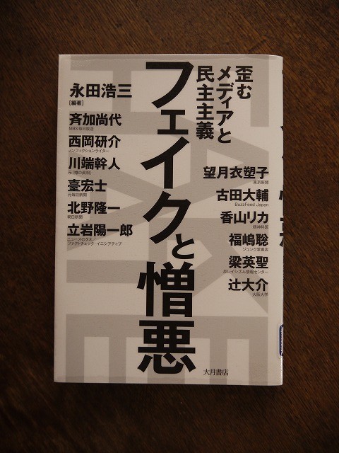 2018-09-11 最近読んだ本 94 本 フェイクと憎悪 永田浩三ほか 大月書店 洛中洛外をゆく 葉室麟 KKベストセラーズ 日本のワインで奇跡を起こす 三澤茂計・三澤彩奈 ダイヤモンド社 柴犬の飼い方 ナツメ社 からだが硬い人のヨガ RIE マイナビ 遊廓に泊まる 関根虎洸 新潮社 スローライフの停留所 内野安彦 郵研社 隣人、それから。 初沢亜利 徳間書店 ひとりサイズで、気ままに暮らす 阿部絢子 大和書房