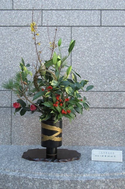 2018-12-24 ロビーの生花 ある日のこと 生涯学習センターのロビーには いつも生花が飾ってあって目を楽しませてくれます 市内の各流派の方たちが活けてくれるようですね 有り難いことです しょっちゅう図書館に行きますので そのたびに鑑賞させてもらっています