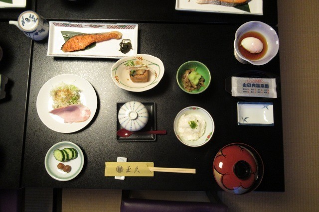 渋温泉の玉久旅館の朝食です